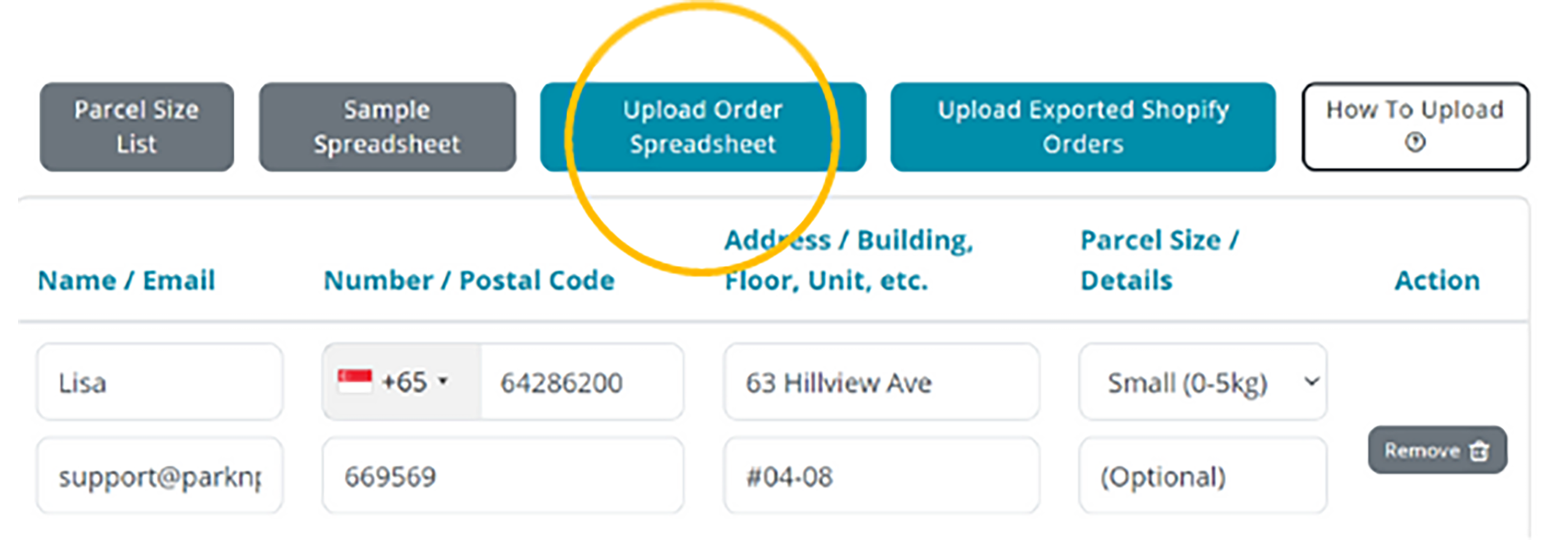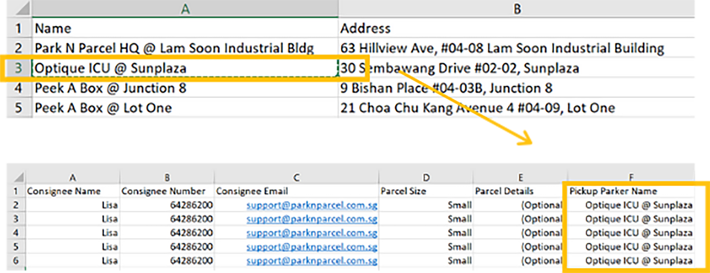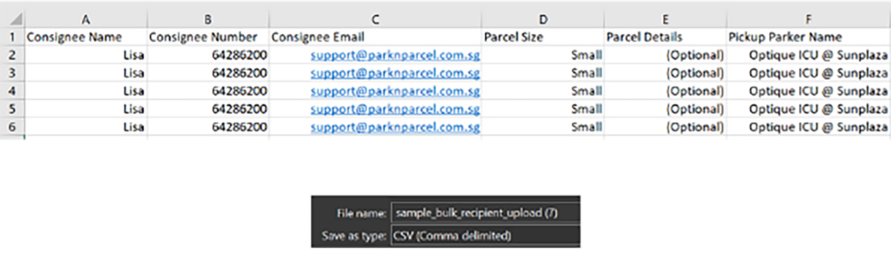 7. Fill in consignee's details, preferred parker points and save file as csv.